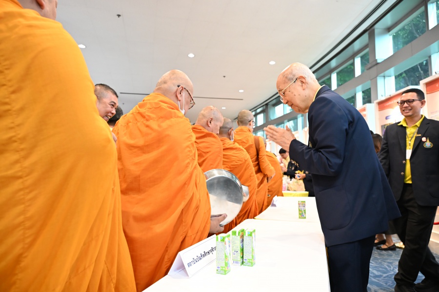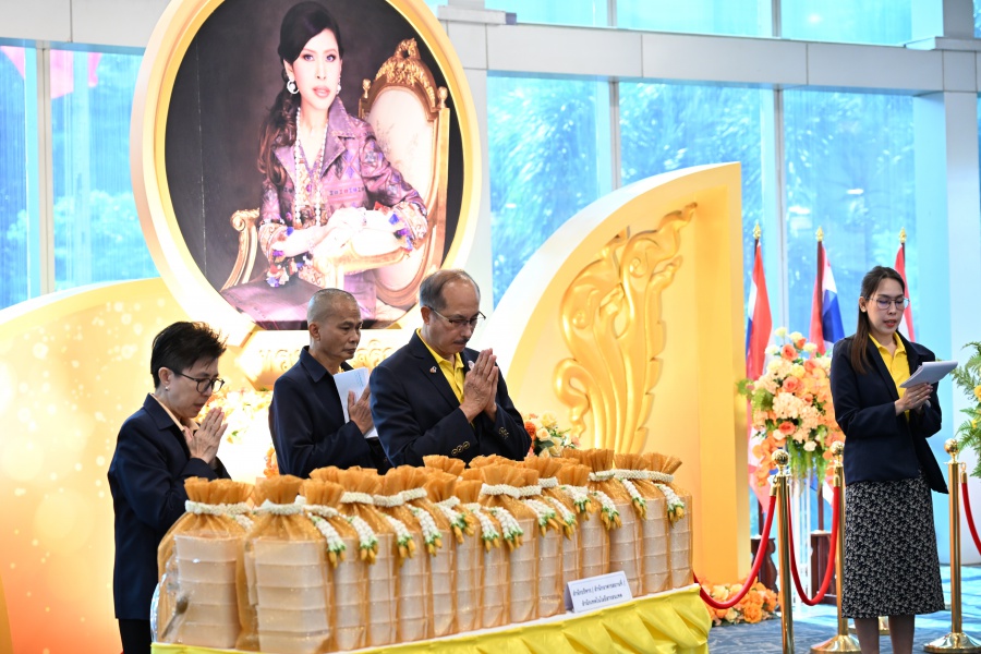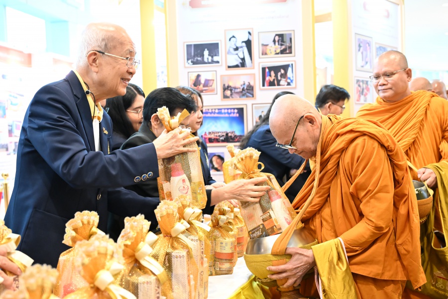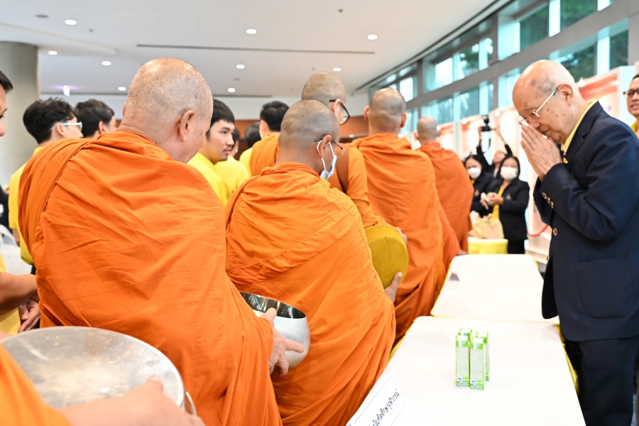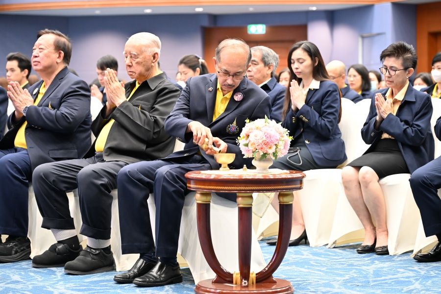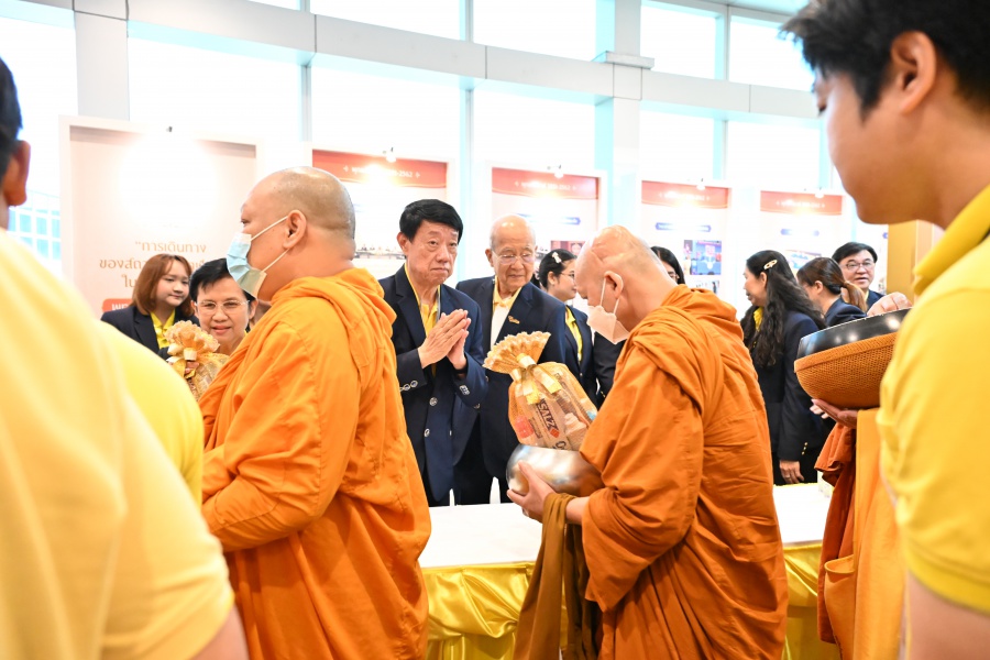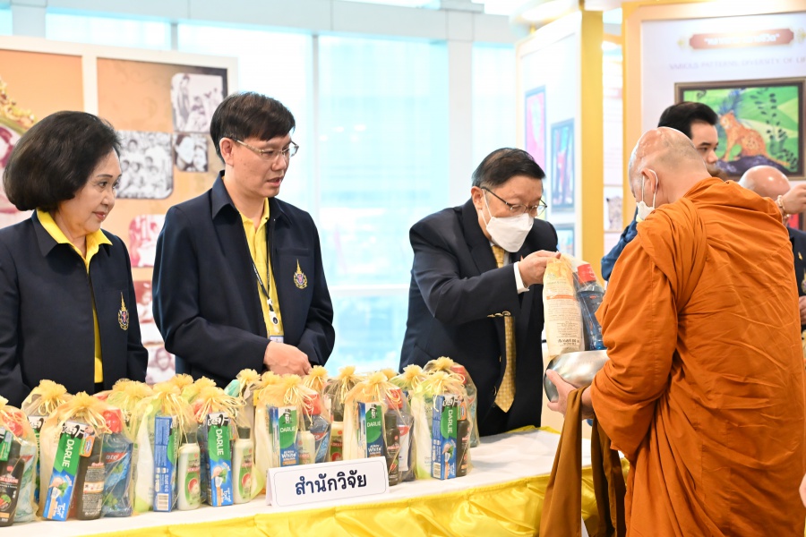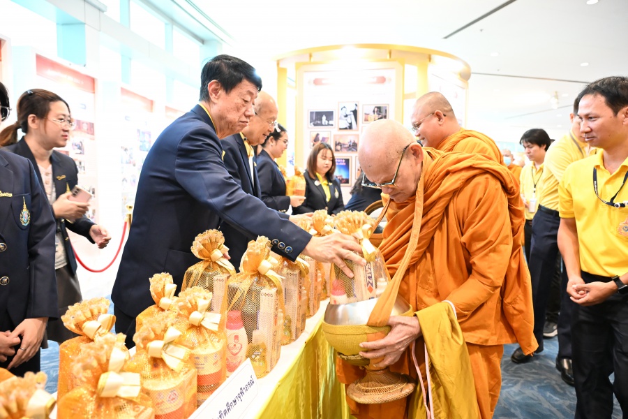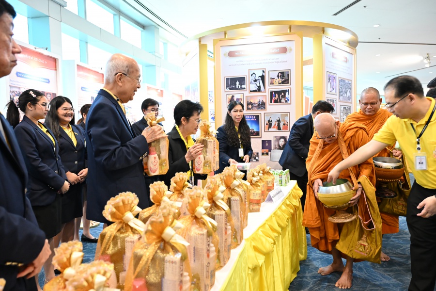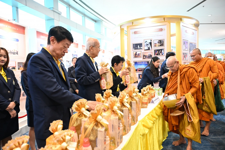 On 10 October 2025 at 9:00 AM, Professor Emeritus Dr. Somsak Ruchirawat, Rector of Chulabhorn Graduate Institute, led the Institute’s administrators, faculty members, and personnel to join in the presentation of food to 29 Buddhist monks on “Nawamindra Maharaj Day” or His Majesty King Bhumibol Adulyadej the Great Memorial Day” 13 October. On this occasion, Assoc. Prof. Dr. Chusak Limsakul Deputy Chairperson of Chulabhorn Research Institute for Administration and Buildings Management, together with the administrators and personnel of Chulabhorn Graduate Institute, presided over the ceremony, which was held at the hall on level 2 of Chulabhorn Research Institute’s conference center. This activity was aimed to serve as a royal charity in remembrance of the royal grace and compassion of His Majesty King Bhumibol Adulyadej the Great’s boundless royal contributions to the welfare benefits of his people.