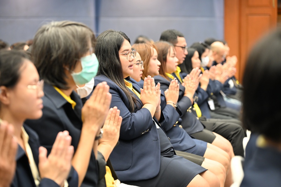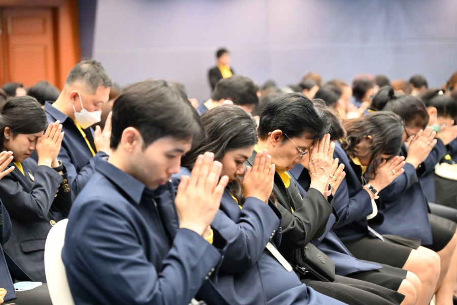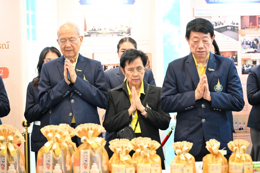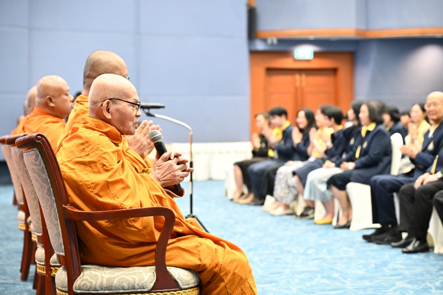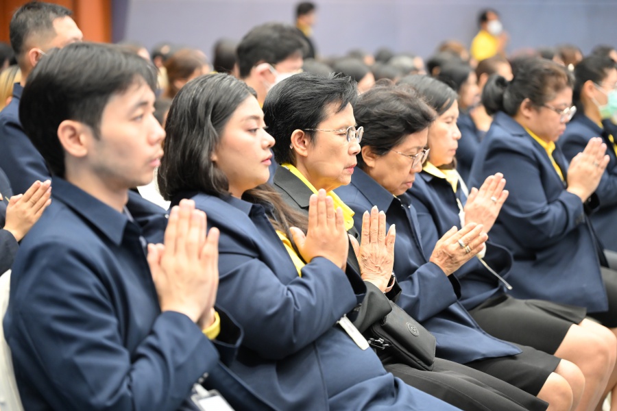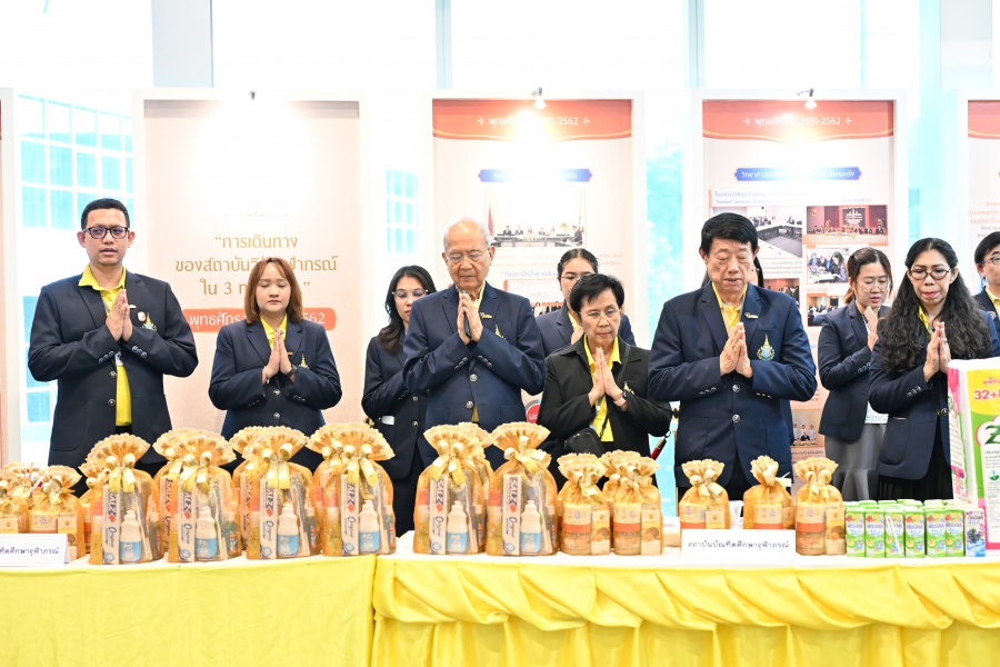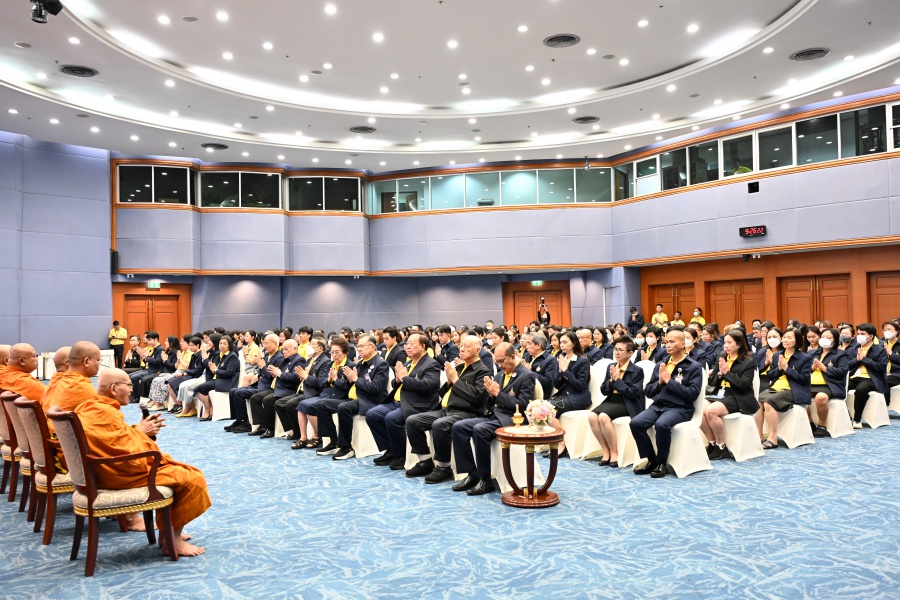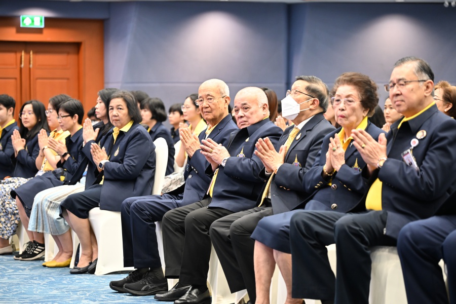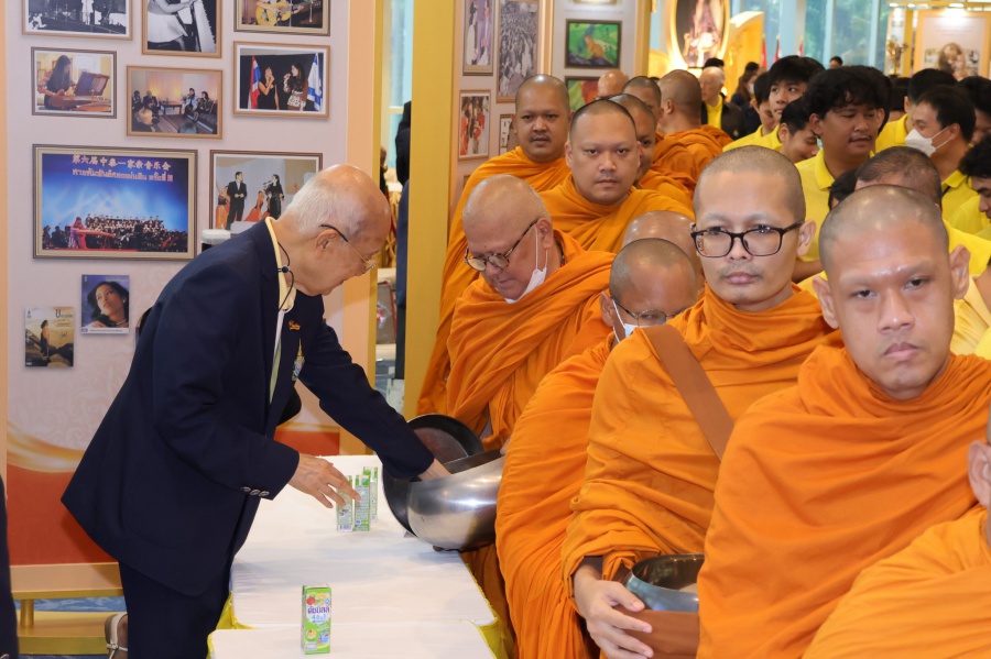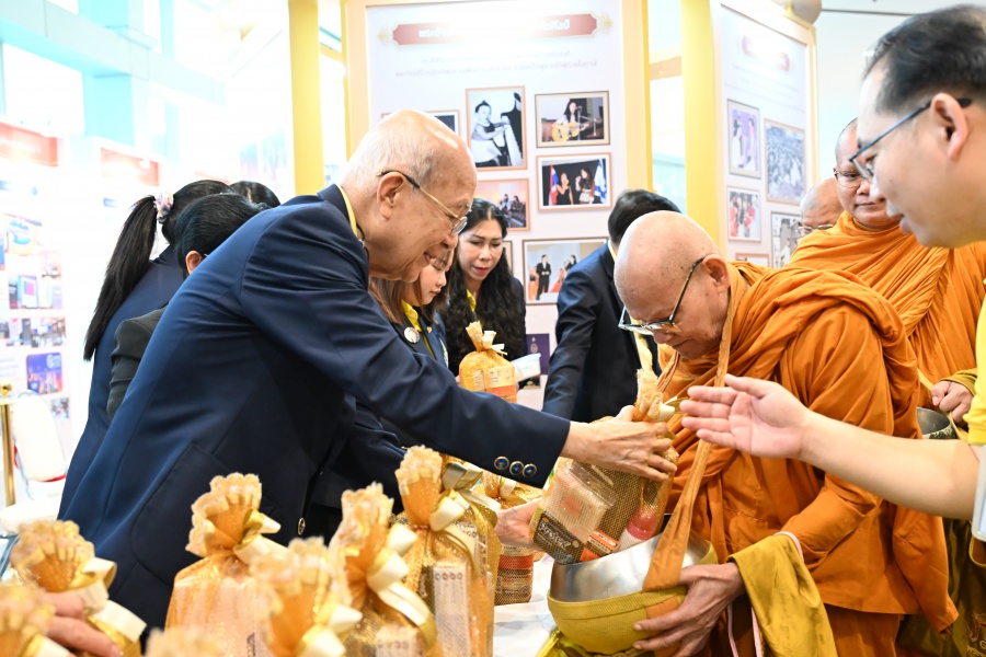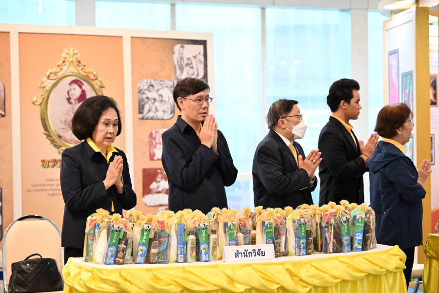 On 10 October 2025 at 9:00 AM, Professor Emeritus Dr. Somsak Ruchirawat, Rector of Chulabhorn Graduate Institute, led the Institute’s administrators, faculty members, and personnel to join in the presentation of food to 29 Buddhist monks on “Nawamindra Maharaj Day” or His Majesty King Bhumibol Adulyadej the Great Memorial Day” 13 October. On this occasion, Assoc. Prof. Dr. Chusak Limsakul Deputy Chairperson of Chulabhorn Research Institute for Administration and Buildings Management, together with the administrators and personnel of Chulabhorn Graduate Institute, presided over the ceremony, which was held at the hall on level 2 of Chulabhorn Research Institute’s conference center. This activity was aimed to serve as a royal charity in remembrance of the royal grace and compassion of His Majesty King Bhumibol Adulyadej the Great’s boundless royal contributions to the welfare benefits of his people.