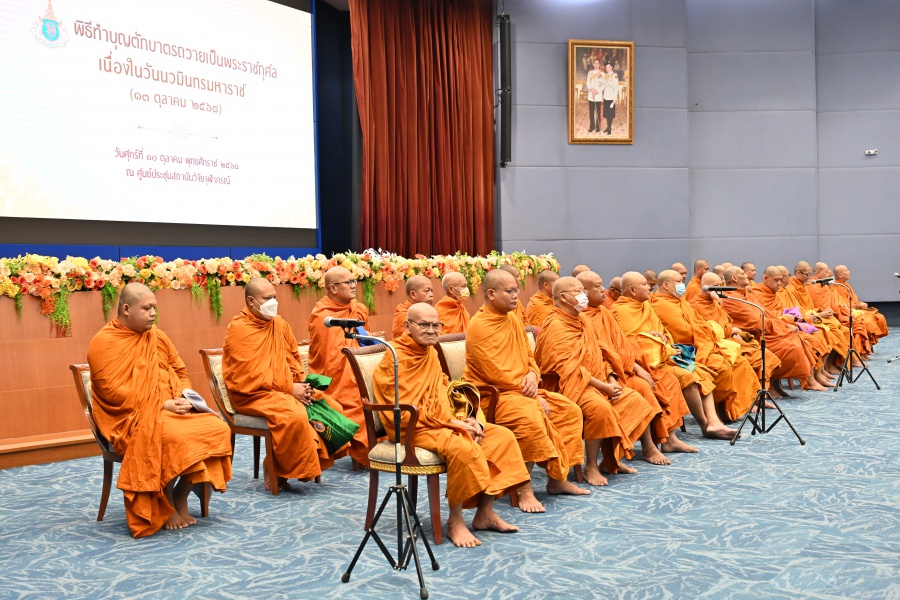 เมื่อวันศุกร์ที่ 10 ตุลาคม 2568 เวลา 09.00 น. ศาสตราจารย์เกียรติคุณ ดร.สมศักดิ์ รุจิรวัฒน์ อธิการบดี สถาบันบัณฑิตศึกษาจุฬาภรณ์ นำคณะผู้บริหาร คณาจารย์ และเจ้าหน้าที่สถาบันบัณฑิตศึกษาจุฬาภรณ์ เข้าร่วมพิธีทำบุญตักบาตรพระสงฆ์จากวัดเทวสุนทร จำนวน 29 รูป เนื่องในโอกาส “วันนวมินทรมหาราช” 13 ตุลาคม โดยมี รองศาสตราจารย์ ดร.ชูศักดิ์ ลิ่มสกุล รองประธานสถาบันวิจัยจุฬาภรณ์ ฝ่ายบริหารและอาคารสถานที่ เป็นประธานในพิธี พร้อมด้วยคณะผู้บริหาร และบุคลากรของสถาบันวิจัยจุฬาภรณ์ ณ บริเวณโถงชั้น 2 อาคารศูนย์ประชุมสถาบันวิจัยจุฬาภรณ์ เพื่อถวายเป็นพระราชกุศลและน้อมสำนึกในพระมหากรุณาธิคุณอันใหญ่หลวงที่พระบาทสมเด็จพระบรมชนกาธิเบศร มหาภูมิพลอดุลยเดชมหาราช บรมนาถบพิตร ได้ทรงบำเพ็ญพระราชกรณียกิจอันเป็นคุณประโยชน์นานัปการ