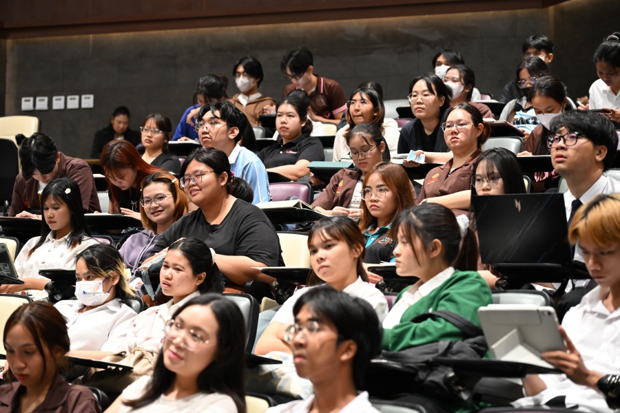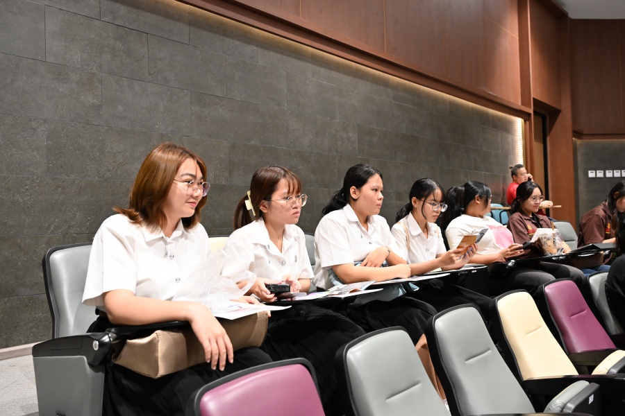 On Wednesday 15 October 2025 at 4:00 PM Associate Professor Dr. Thanuttkhul Mongkolaussavarat, Assistant Rector of Chulabhorn Graduate Institute, presided over a road show event at Slope Room on the third floor of the SC6 Building of the Faculty of Science, King Mongkut’s Institute of Technology Ladkrabang (KMITL). Dr. Nutchapong Suwanwong, a faculty member of the Chemical Sciences Program of Chulabhorn Graduate Institute, led a team of five of the Institute’s faculty members in providing information on the mode of delivery and procedure of admission to the Institute’s graduate study programs at the road-show event. Associate Professor Dr. Sutee Chutipaijit, dean of KMITL’s Faculty of Science, in the company of his colleagues, honored the GCI team with a warm welcome. A total of about 132 students of KMITL’s Faculty of Science attended the event with much interest in the information provided on the contents of the Institute’s three graduate programs at the Master’s and doctoral levels, namely, Applied Biological Sciences: Environmental Health (ABS), Chemical Sciences Program (CS), and Environmental Toxicology (ET), as well as the benefits they will receive if their applications for admission to the Institute’s programs are successful. Such benefits include full scholarships for the whole period of the study programs and opportunities for participation in the research activities of leading universities abroad.