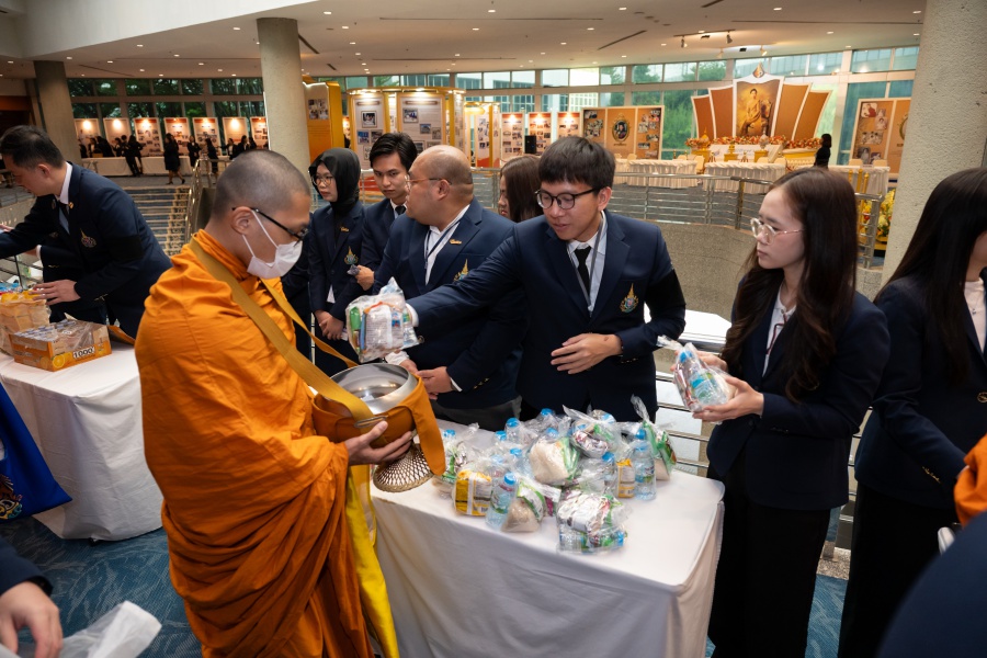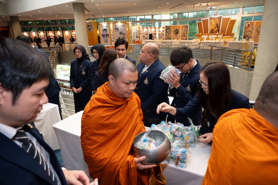 ทั้งนี้ ในช่วงแรกเป็นพิธีทำบุญตักบาตรพระสงฆ์จากวัดหลักสี่และวัดสีกัน (พุทธสยาม) รวมทั้งสิ้น จำนวน 29 รูป เพื่อถวายเป็นพระราชกุศลและน้อมรำลึกถึงพระผู้เสด็จสู่สวรรคาลัย ณ บริเวณโถง ชั้น 2 อาคารศูนย์ประชุมสถาบันวิจัยจุฬาภรณ์