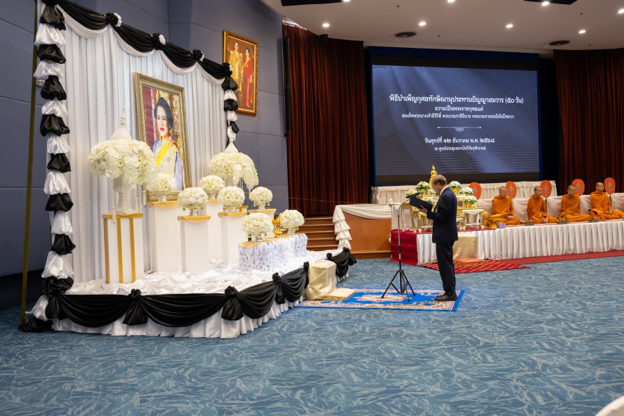 On Friday 12 December 2568 (2025) at 9:00 AM Professor Emeritus Dr. Somsak Ruchirawat, Rector of Chulabhorn Graduate Institute, joined in a Thaksinanuprathan ceremony or making merit for the deceased to commemorate the 50th day of the passing of Her Majesty Queen Sirikit The Queen Mother. Associate Professor Dr. Chusak Limsakul, Vice President for Administration and Buildings of Chulabhorn Research Institute, presided over the ceremony. He was accompanied by the administrators and personnel of Chulabhorn Research Institute.