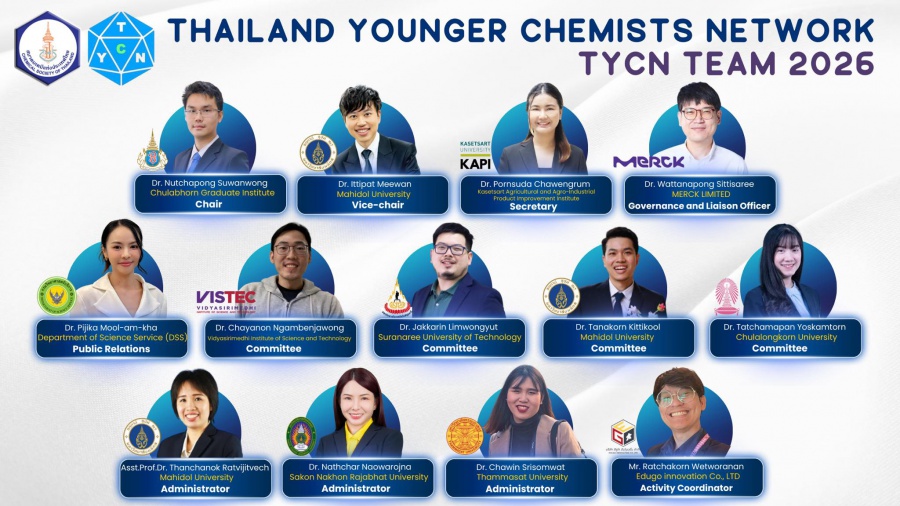 The TYCN was established through the synergy of young chemists with a primary mission to foster collaboration, integration, and exchange of knowledge across the public sector, academic institutions, and the industrial segments throughout Thailand. At present the TYCN Executive Committee comprises 13 formally appointed members for the year 2026.