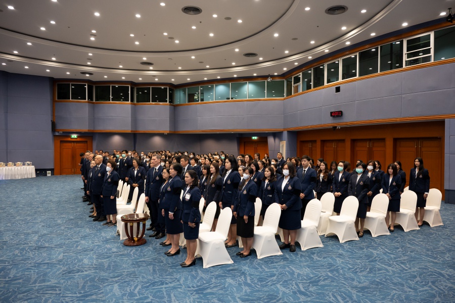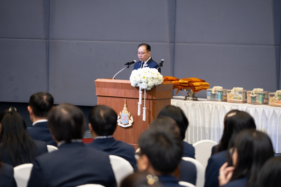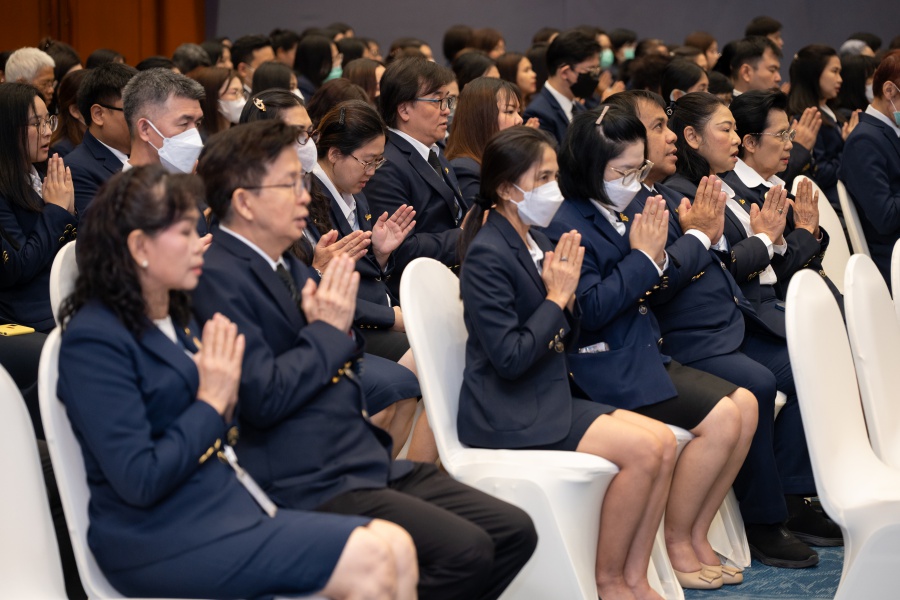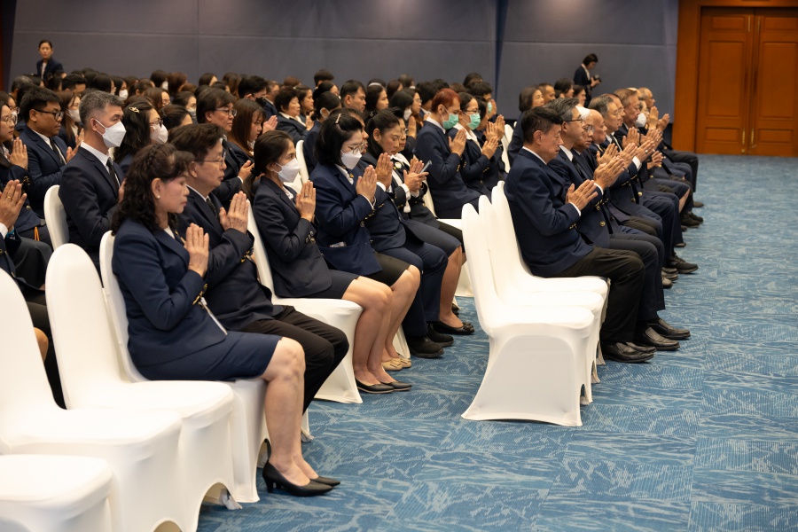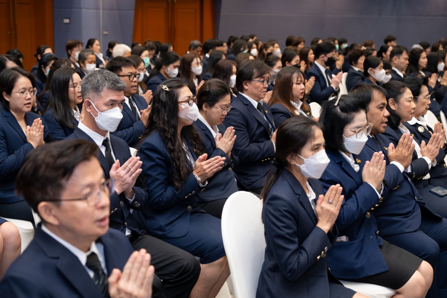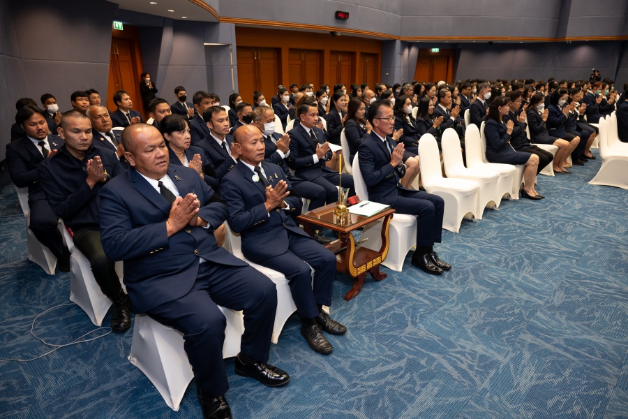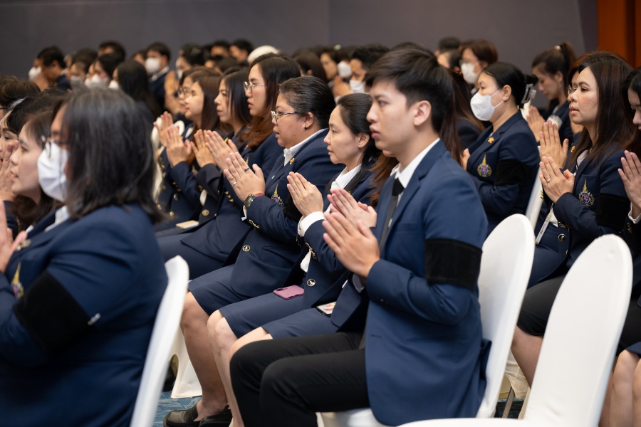 After that, the chairperson of the ceremony laid robes for the monks, who performed the Sadapakon (funeral robe-chanting) rite, and the administration tram members gave offerings to the monks, who returned their rejoice in the merit made. Finally, the chairperson poured water of dedication, and the ceremony ended with paying respectful farewell to the Triple Gems, the royal photograph and the monks.