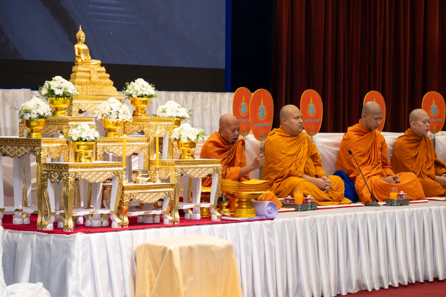 Ceremonial activities consisted of recitation of prayers by 10 Buddhist monks led by Phra Khru Sripunyakorn, assistant abbot of Wat Lak Si, who presided over the religious ceremony. The prayer recitation was devoted to Her Majesty Queen Sirikit, The Queen Mother, who had devoted her whole life to performing royal duties for the benefits of the people and the country’s progress and prosperity.