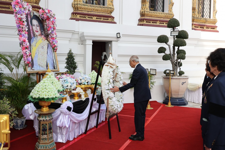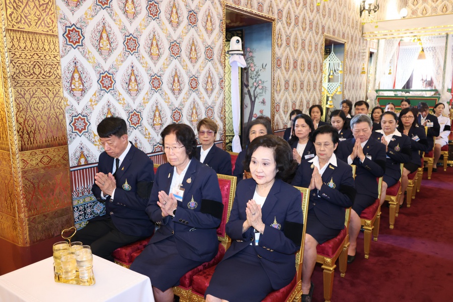 In accord with His Majesty the King’s gracious permission for groups of individuals, organizations, and associations to hold merit-making ceremonies for Her Majesty Queen Sirikit, The Queen Mother, at the Dusit Maha Prasat Throne Hall.