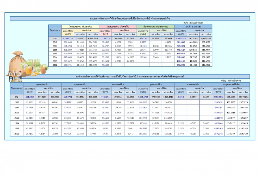 สรุปผลการใช้จ่ายงบประมาณรอบ 6 เดือน ประจำปีงบประมาณ พ.ศ. 2562 – 2568