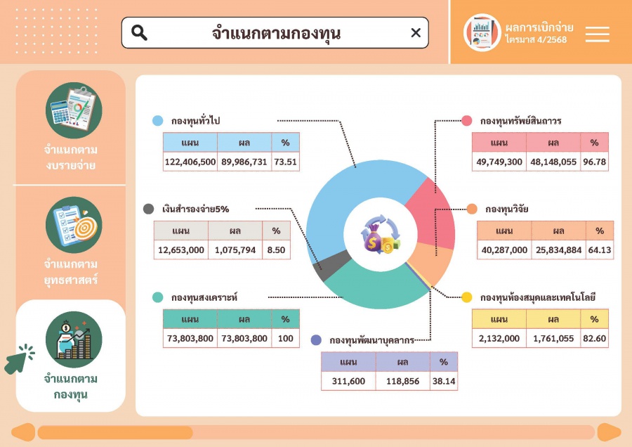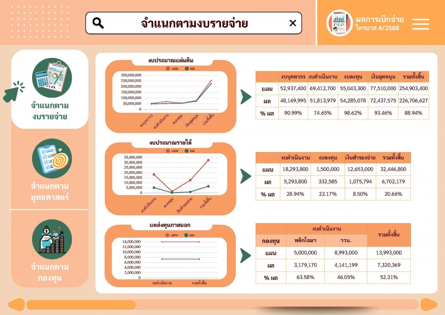 Dashboard ผลการใช้จ่ายงบประมาณประจำปีงบประมาณ พ.ศ. 2568